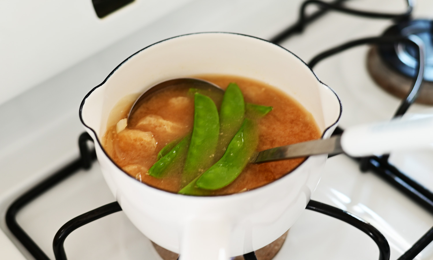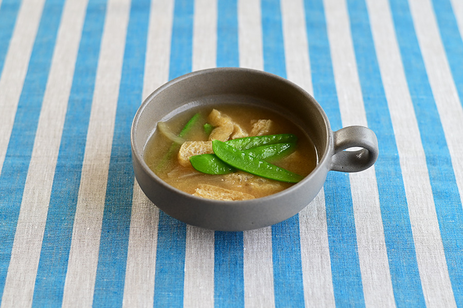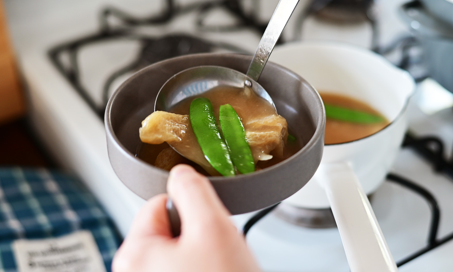 口が広く浅めの形状の手つきボウルは、みそ汁にもおすすめ。
