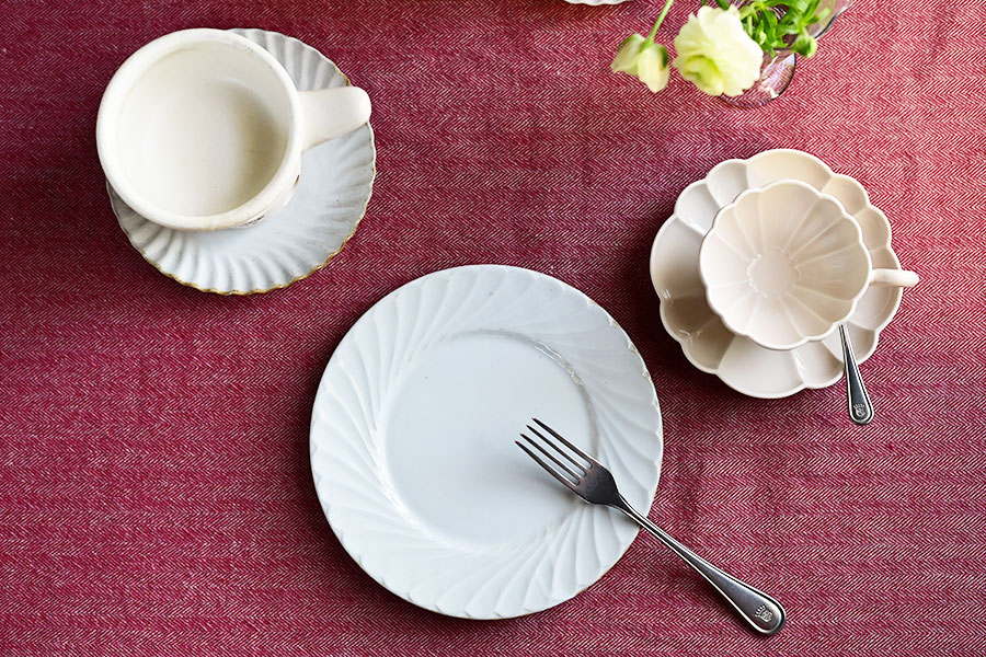 細かな模様や立体的な装飾が特徴の器同士を合わせる場合、 色味を揃える ことで統一感を持たせるのがポイントです。 また、主役となる装飾が目立つ器と、シンプルな器を組み合わせることで、メリハリをつけると統一感がありながらも変化のあるテーブルになります。