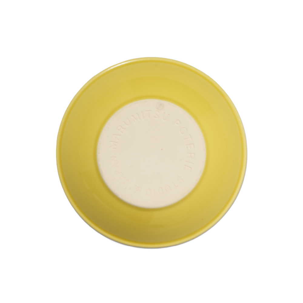 高台のないフラットな底面は赤土の素地が現れ、凹文字のロゴと合わせて素朴な表情をしています。