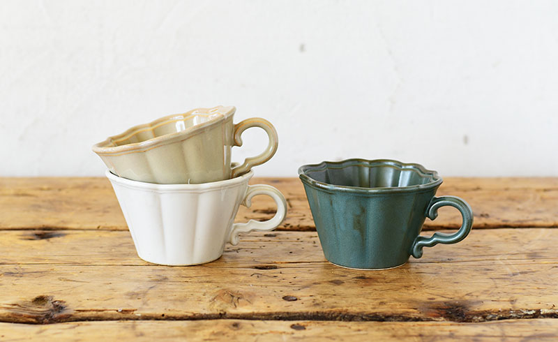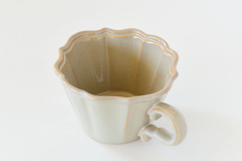 そんな釉薬の変化をより活かせるように、縁の装飾やマグの取手は角の出し方や溝の幅や深さにこだわっています。
