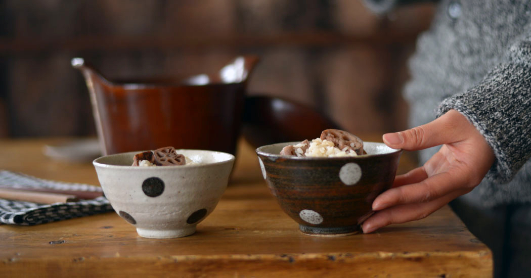 中でも長く愛され続けているのが、「水玉シリーズ」の飯碗です。