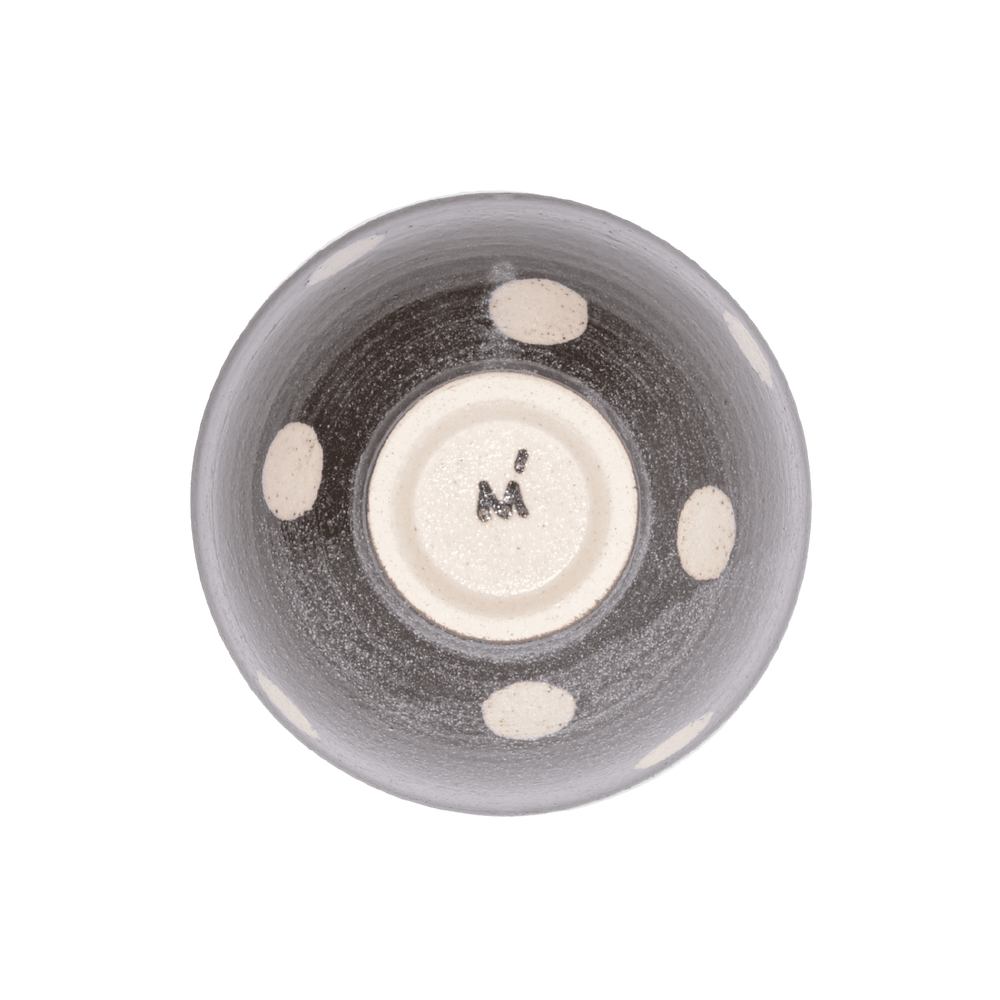 水玉模様は、ひとつひとつ手描きで施されており、少しいびつで素朴な雰囲気。