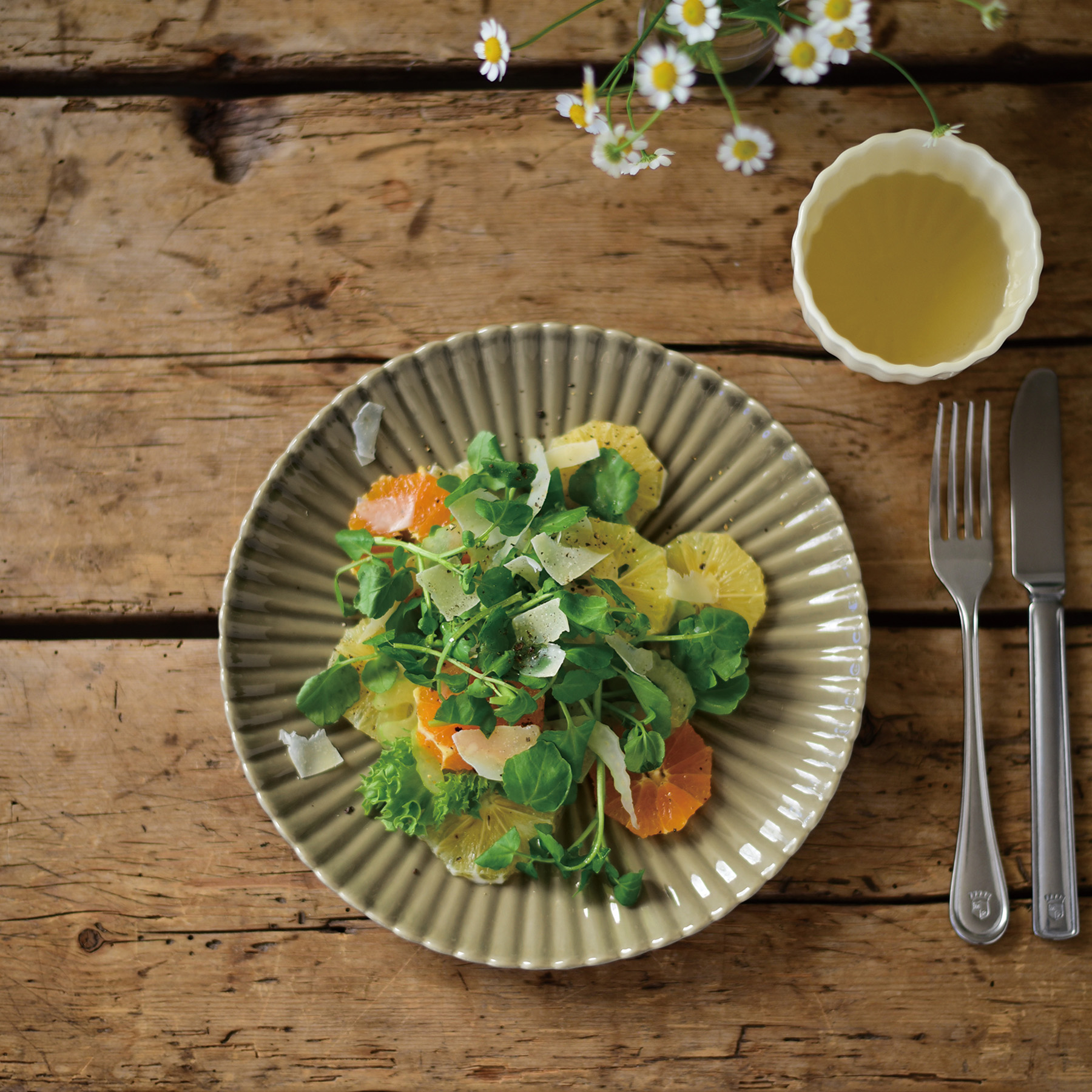 シャルパンテ テーブルスプーン / シャルパンテ テーブルフォーク / シャルパンテ テーブルナイフ / シャルパンテ デザートフォーク / カフェトレーL / ボスケ サーバースプーン / ボスケ サーバーフォーク / 稲穂 6寸皿 / ジャルダン(ヴェール) テーブルクロス