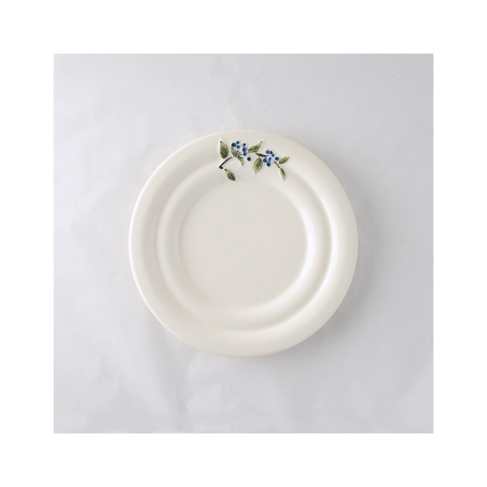 ぷっくりと美味しそうに膨らんだブルーベリーの実と葉は、職人さんの手によって、ひとつずつ丁寧に描かれています。