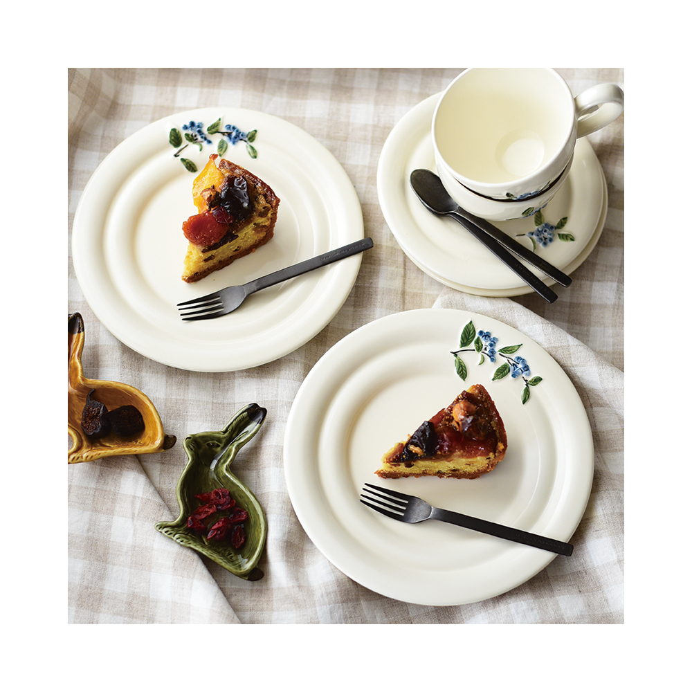 紅茶の時間を楽しむための器が揃ったミルティーユシリーズ。ミルティーユはフランス語でブルーベリーという意味です。