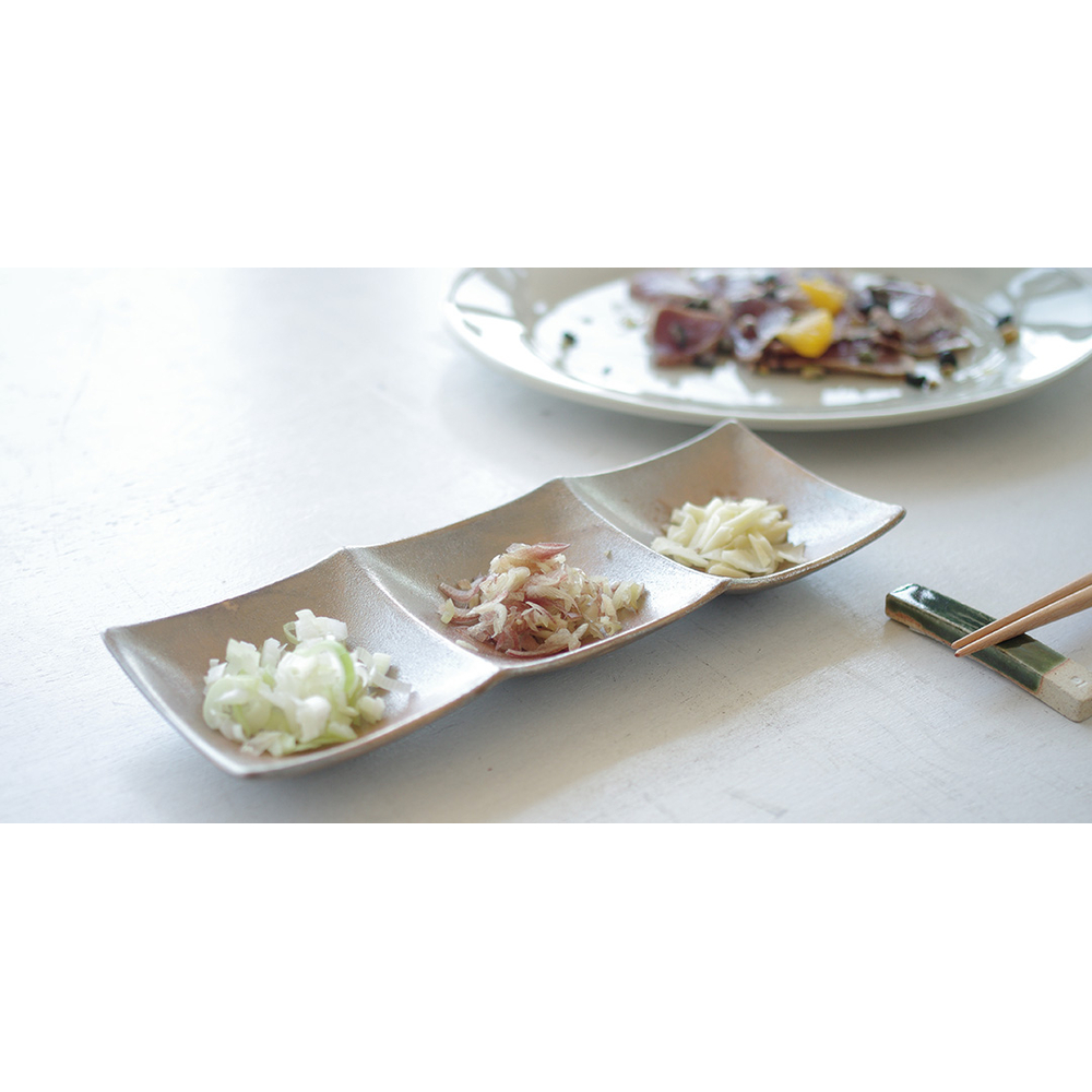 副菜を何品かのせたり、ソースやしょうゆを入れてタレ皿として使ったり、