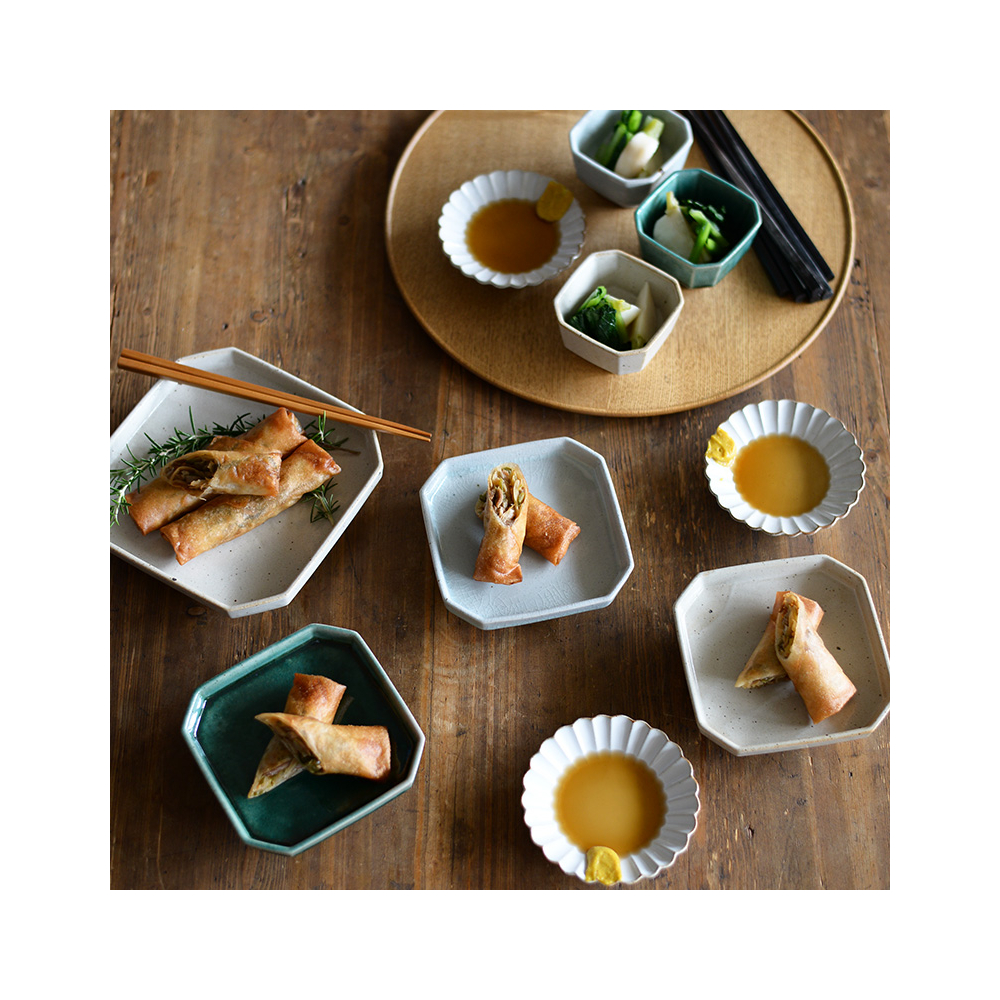 6寸皿は主菜用として、4.5寸皿は取り皿や和菓子、3寸小鉢は和え物など、基本的な和食が盛り付けやすいラインナップです。