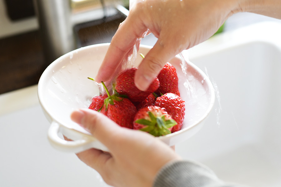 苺やラズベリーなどフルーツの水気を切り、