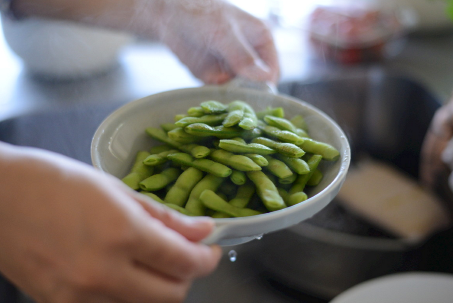 茹でたての枝豆やお野菜も豪華な一品に見せてくれます。