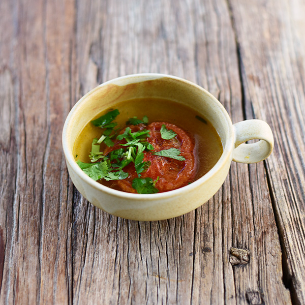 温かいスープにぴったりな素朴な色合いと質感が魅力のパエバ。