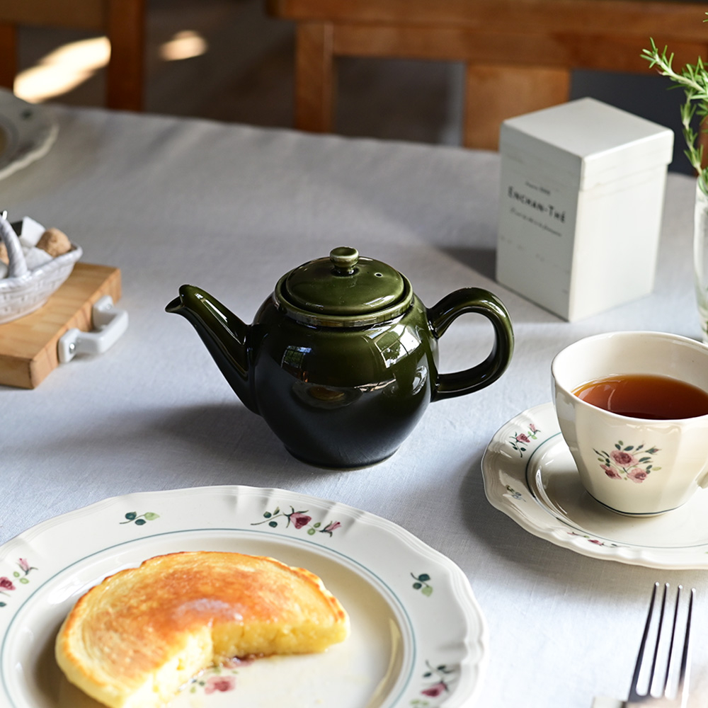 シンプルなデザインでお気に入りの紅茶とお菓子を楽しむためのポットです。
