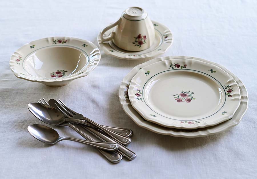 おすすめの使い方はシンプルな料理を盛り付けること。プレートはパンケーキやサンドイッチ、オムレツ、ほうれん草のソテーなどを大胆に盛り付けても、縁回りの装飾が華やかに演出してくれます。ボウルはフルーツとグラノーラ、ポタージュや、グリーンサラダにもおすすめです。