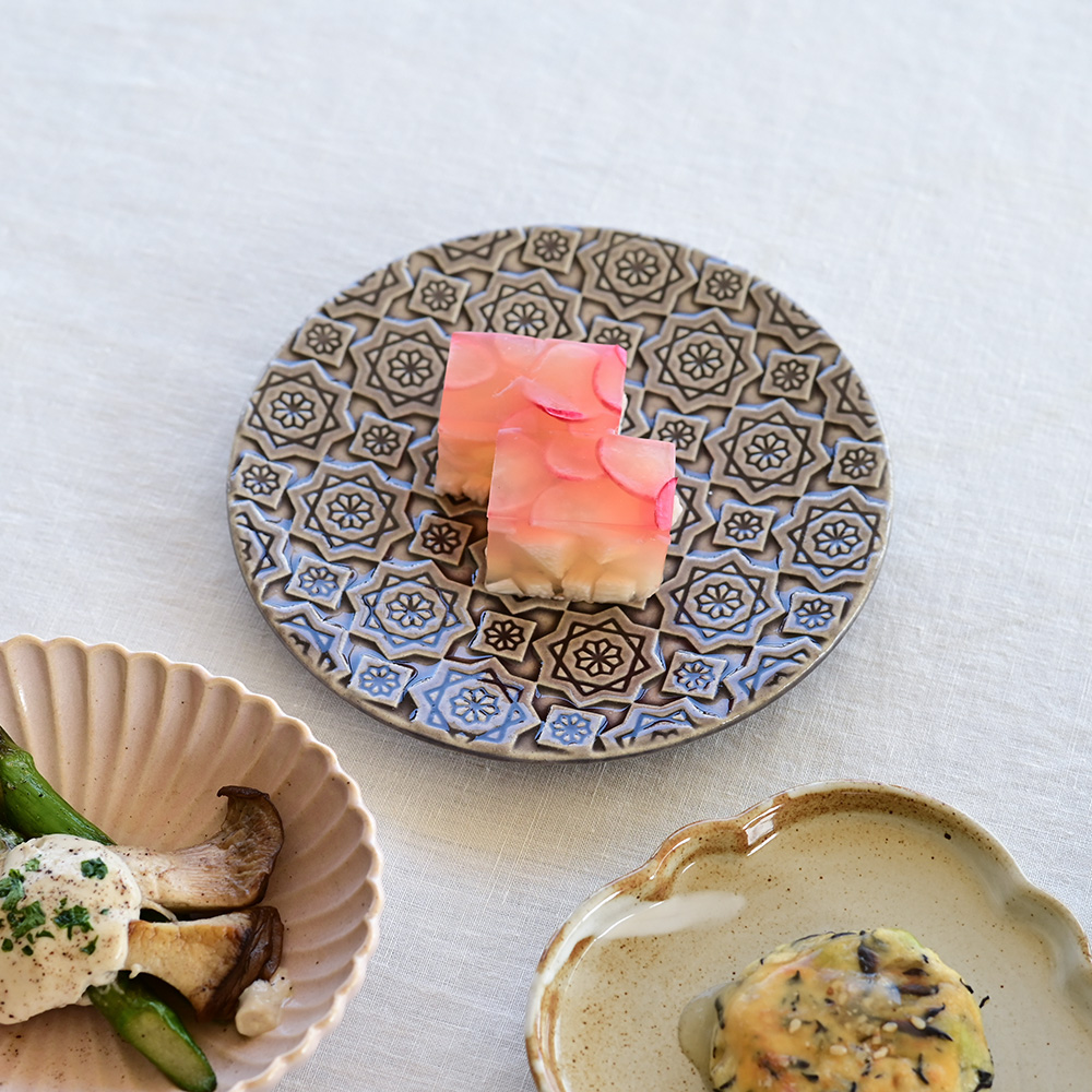 サイズは直径15cmほどで、銘々で使える大きさ。菓子皿や受け皿として、生春巻きやサラダの取皿として食卓でもコンパクトに収まります。