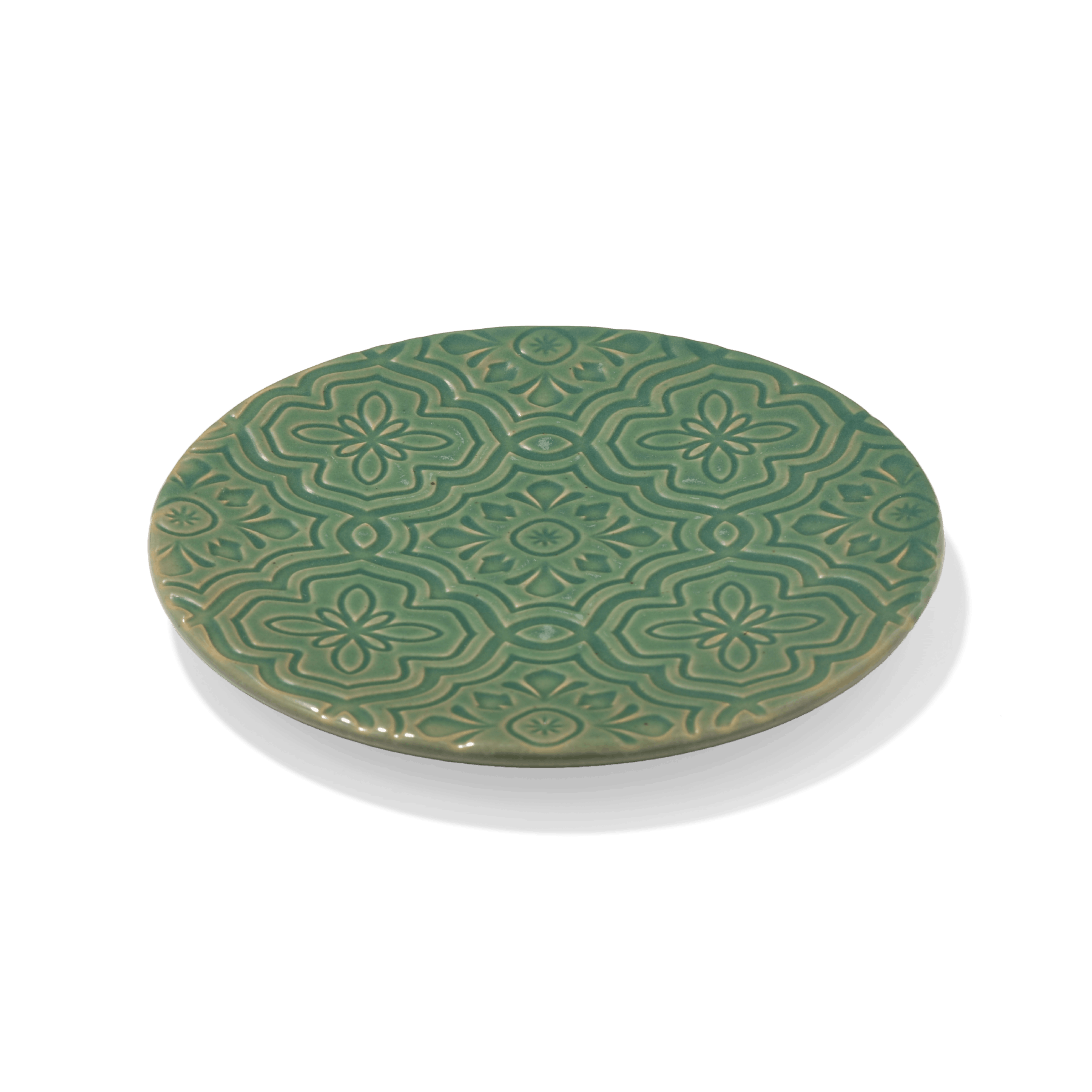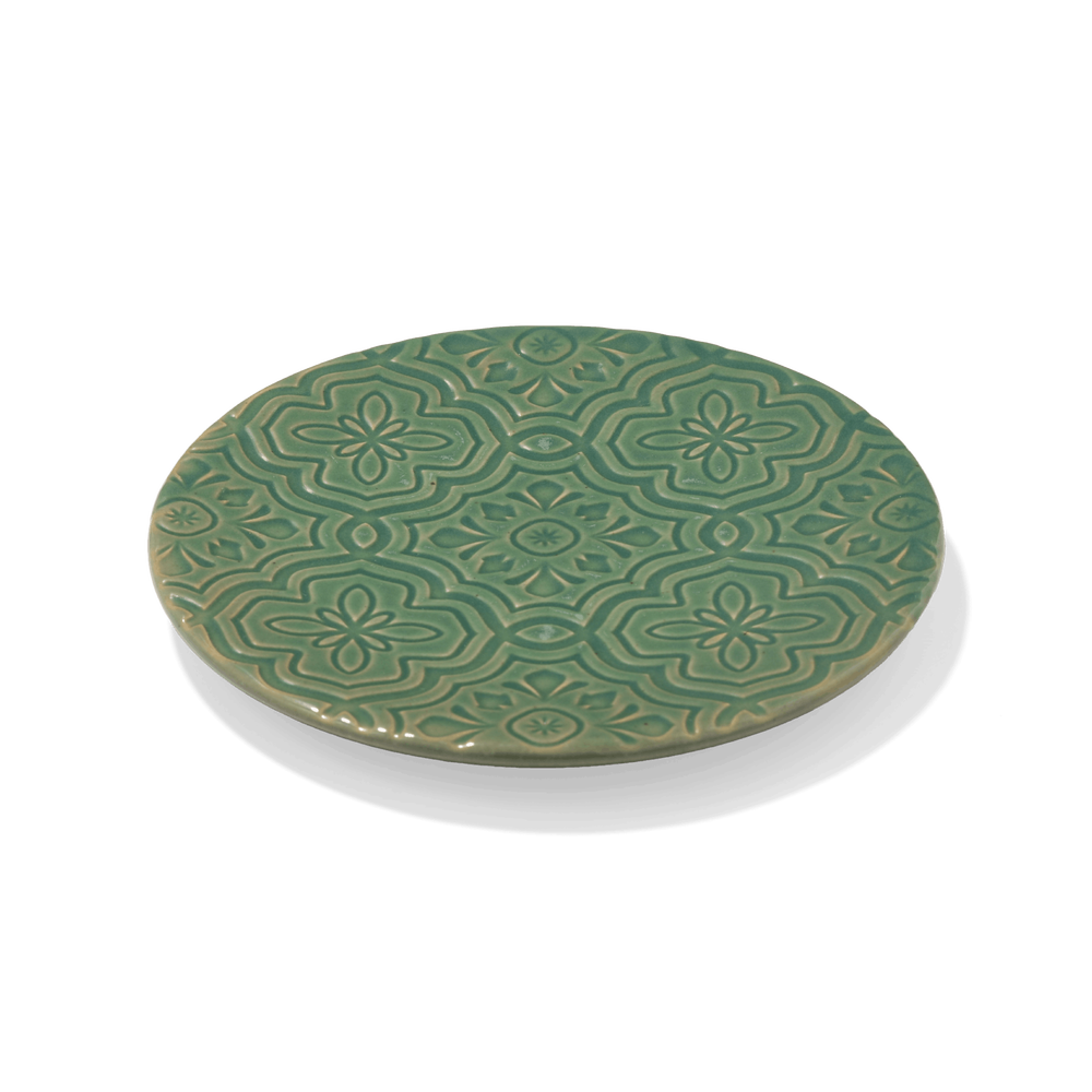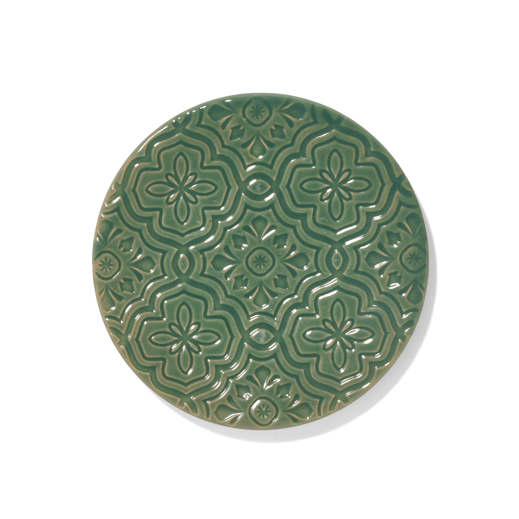 いつまでも飽きずに組み合わせて使えるように、 パターンは大紋と小紋の2種類。万華鏡を覗いた時のわくわく感や、花や星を思わせるデザインに仕上がっています。連続柄が浮かび上がる部分と釉薬がたまる部分の比率が美しくなるように線の太さや深さ、柄の大きさを考えています。