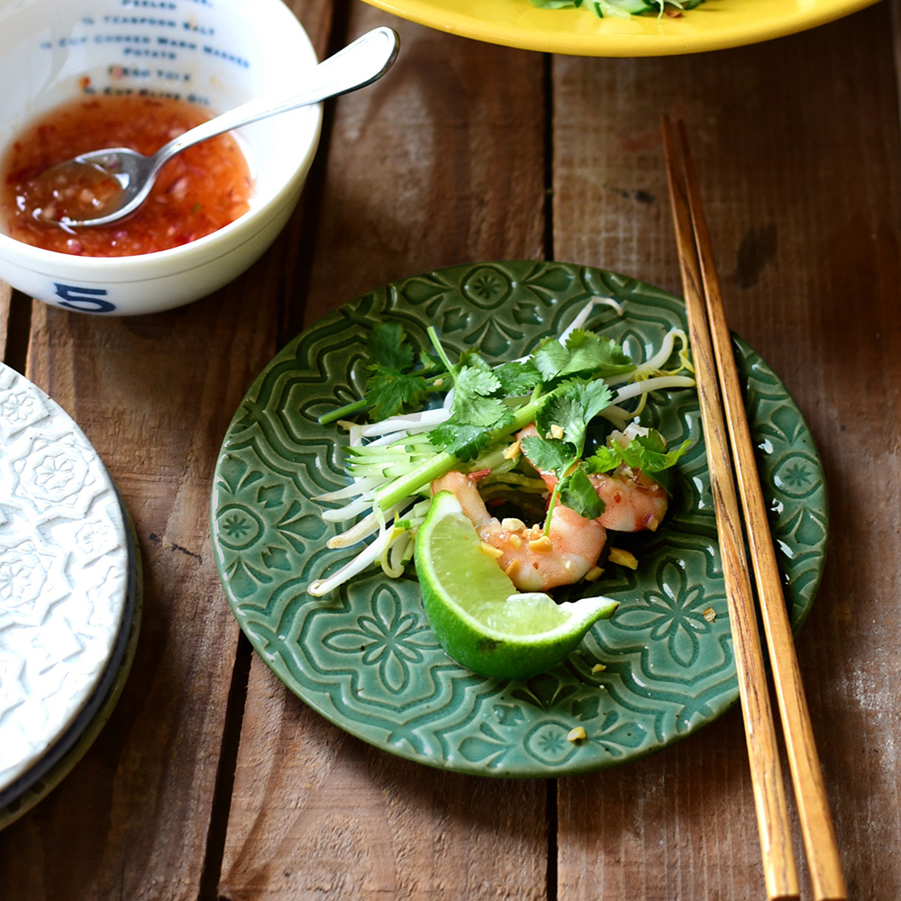 ベトナムを訪れたら欠かせないのが、屋台のごはん。屋台が並ぶ通りを歩くと多くの人が行き交い漂う東南アジア特有の美味しそうな香りに目移りします。そして、街の壁や床に散りばめられた色彩豊かなベトナムタイルはどれも新鮮で、旅行気分を一段と高めてくれます。賑やかなベトナムの街を旅行しているようなプレートが作れたらと思い、 企画が始まりました。