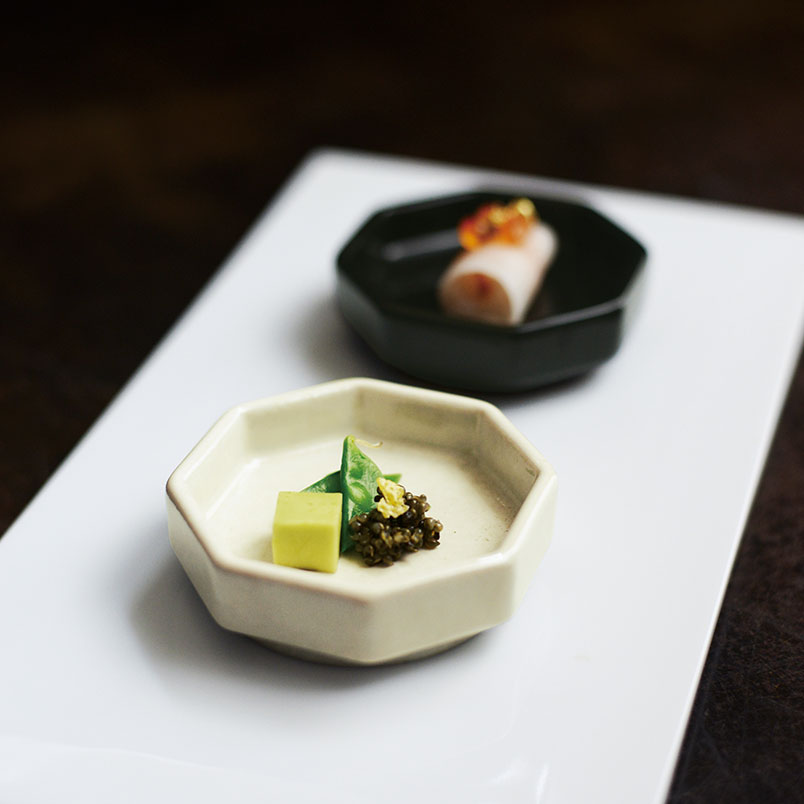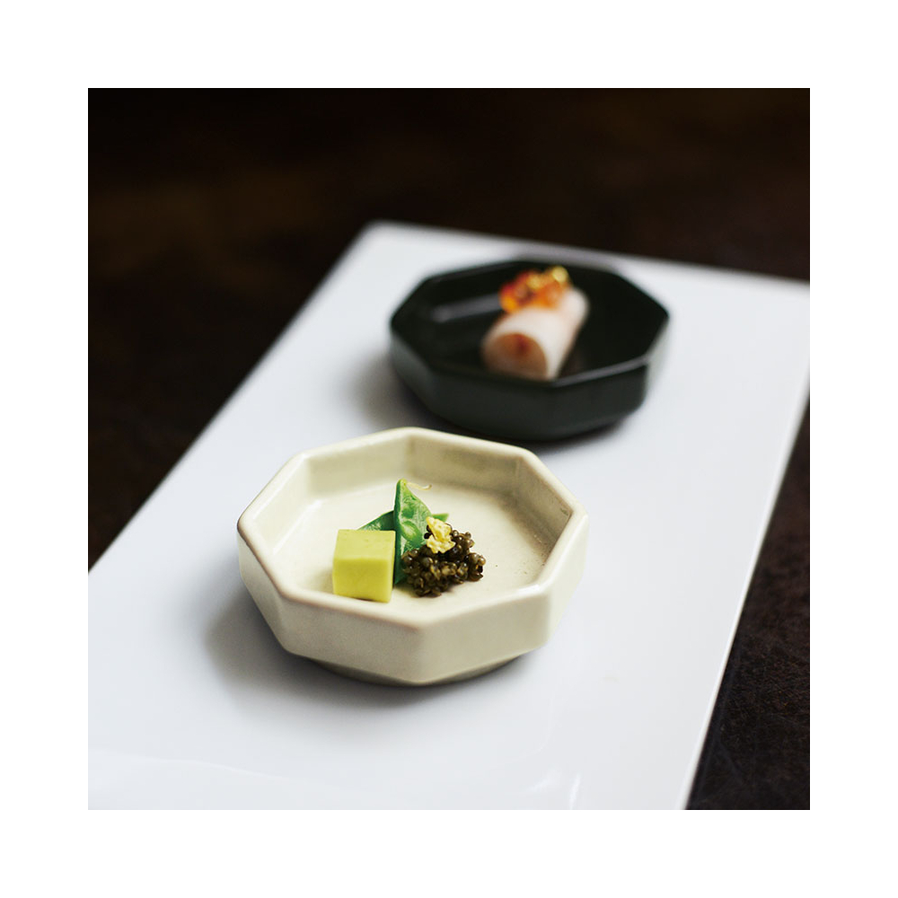 「チェンチェンシノワ」とはフランス語で「中国の犬」の意味。アジア料理を意識した厚みのある温かい質感のシリーズです。八角小皿はタレや薬味用のほか、八寸の一品用として他のお皿と組み合わせて使えば、その美しい形が盛り込んだ料理に映えます。 ※白と黒は在庫がなくなり次第、仕様変更となります。