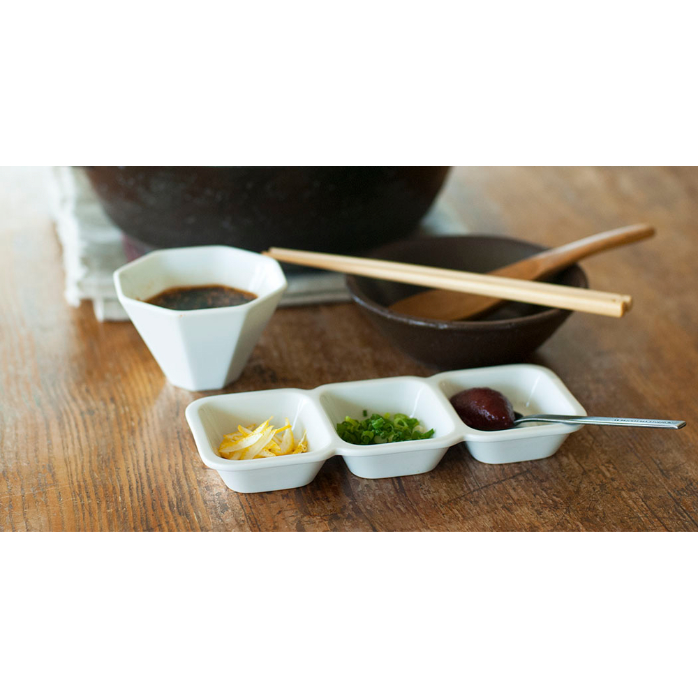 フィネスタは、小さな小皿が連なったデザインの為、コンパクトに必要な薬味やタレを盛り付けることが出来ます。