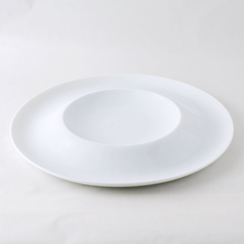 パドルは英語でみずたまりのこと。山間にできる湖をイメージしたプレートです。縁にも設けられた溝から盛り面へと続く曲線と、エッジのコントラストが特徴。真ん中にボウルを合わせたり、異なった素材の器を組み合わせても面白いのですよ。