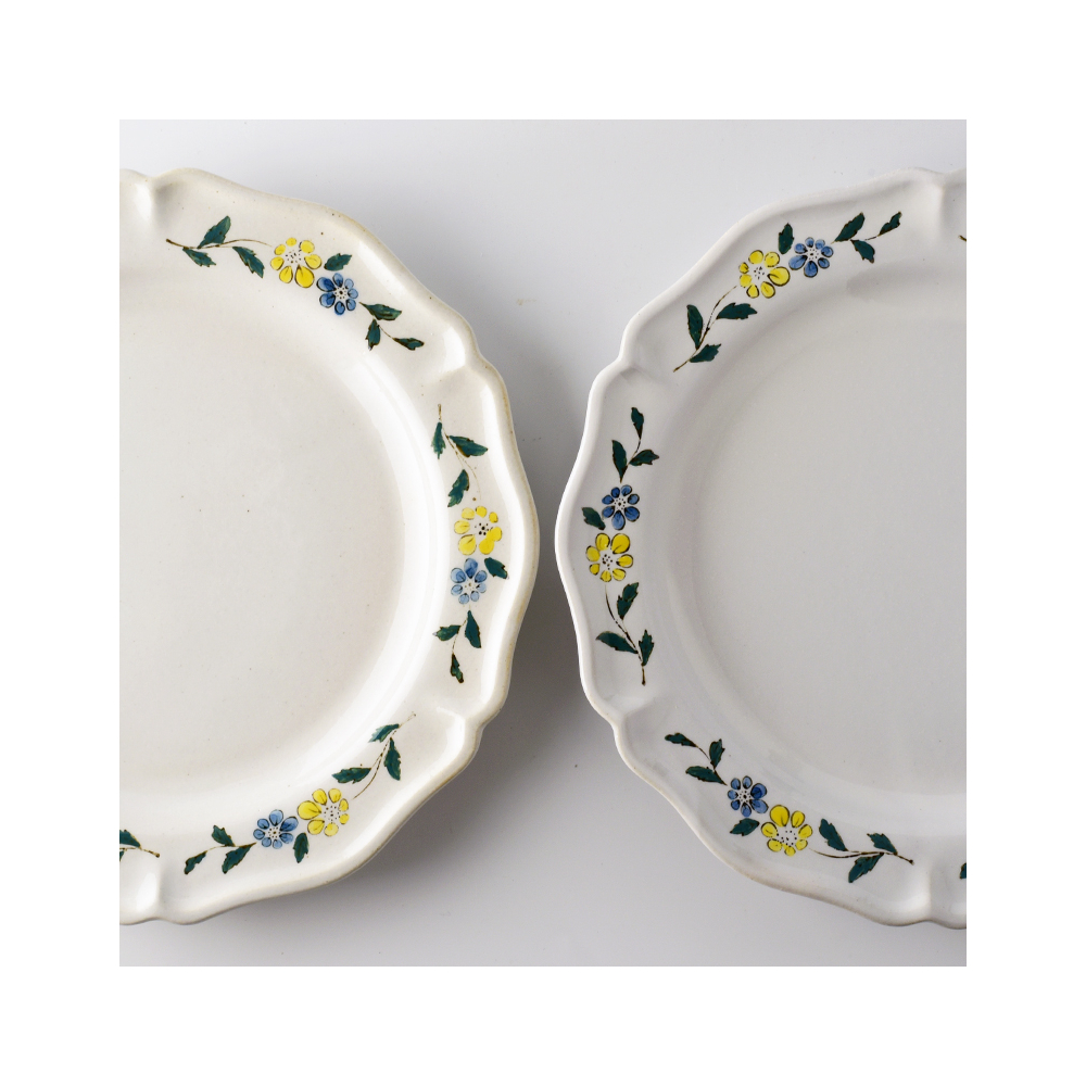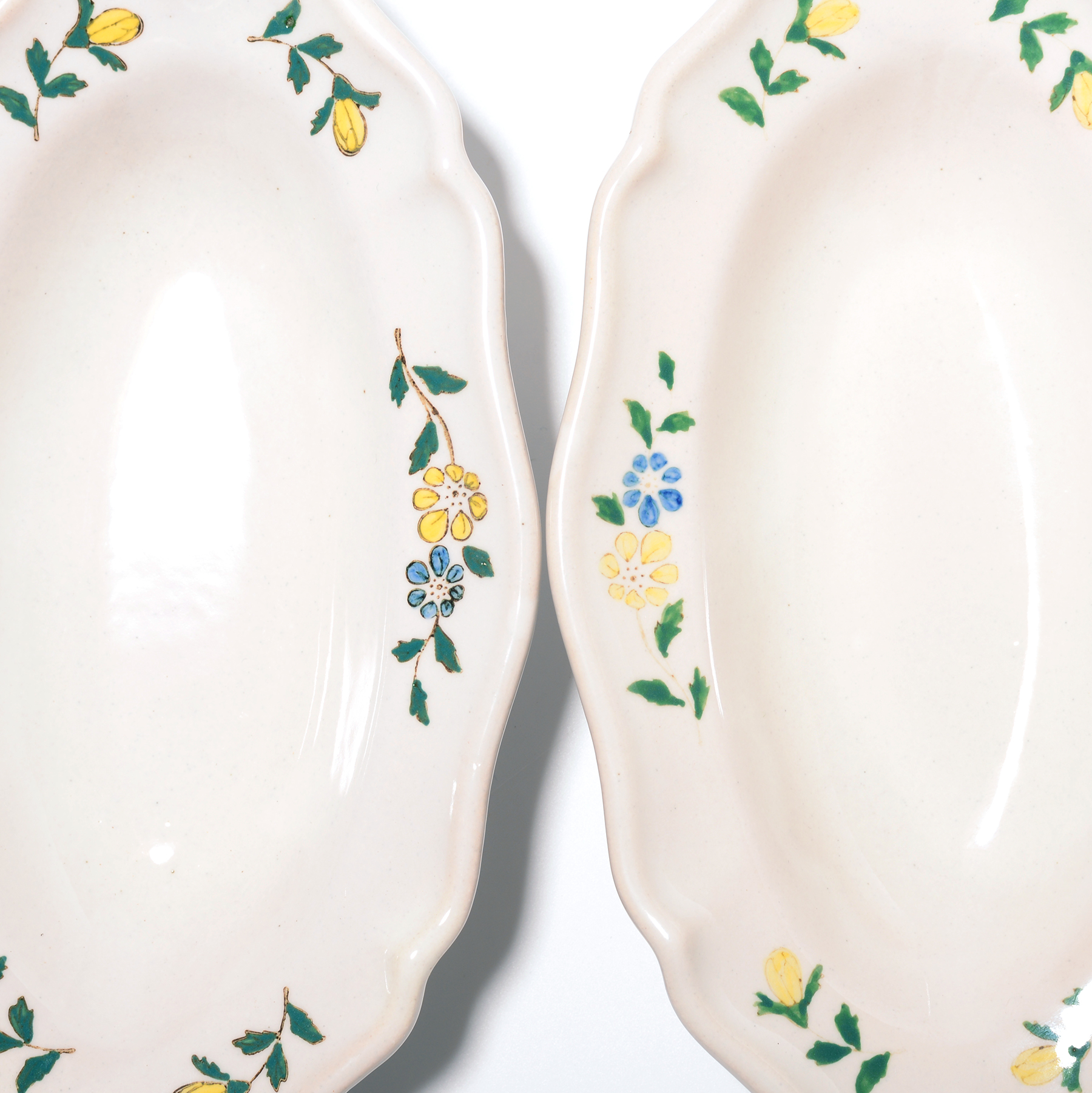 プレートやボウルの縁には植物の絵柄が一つひとつ施されています。