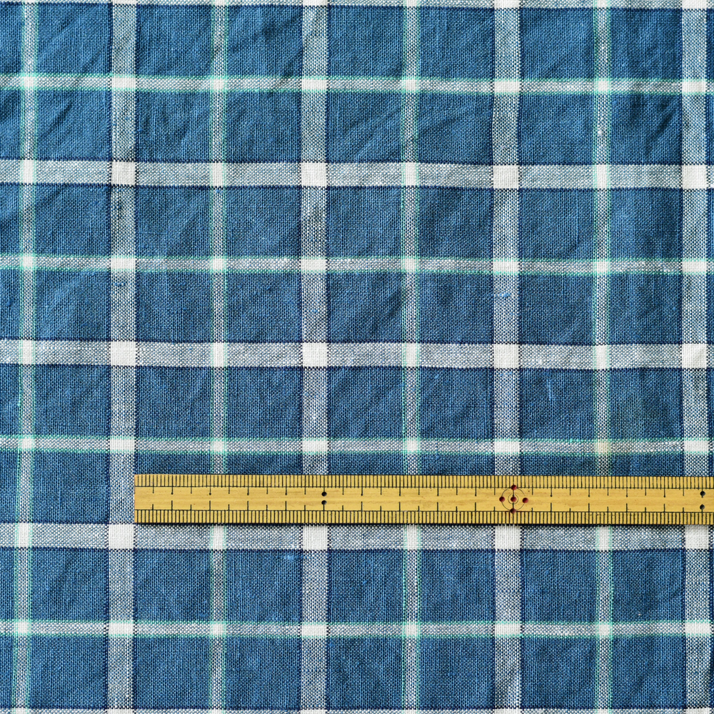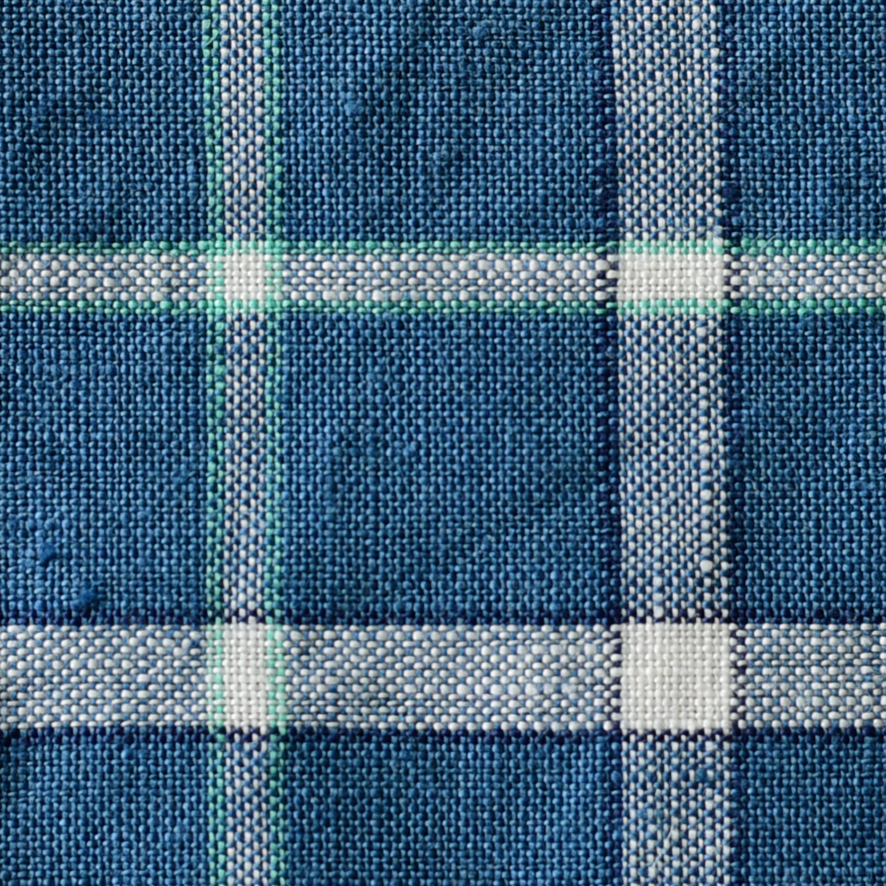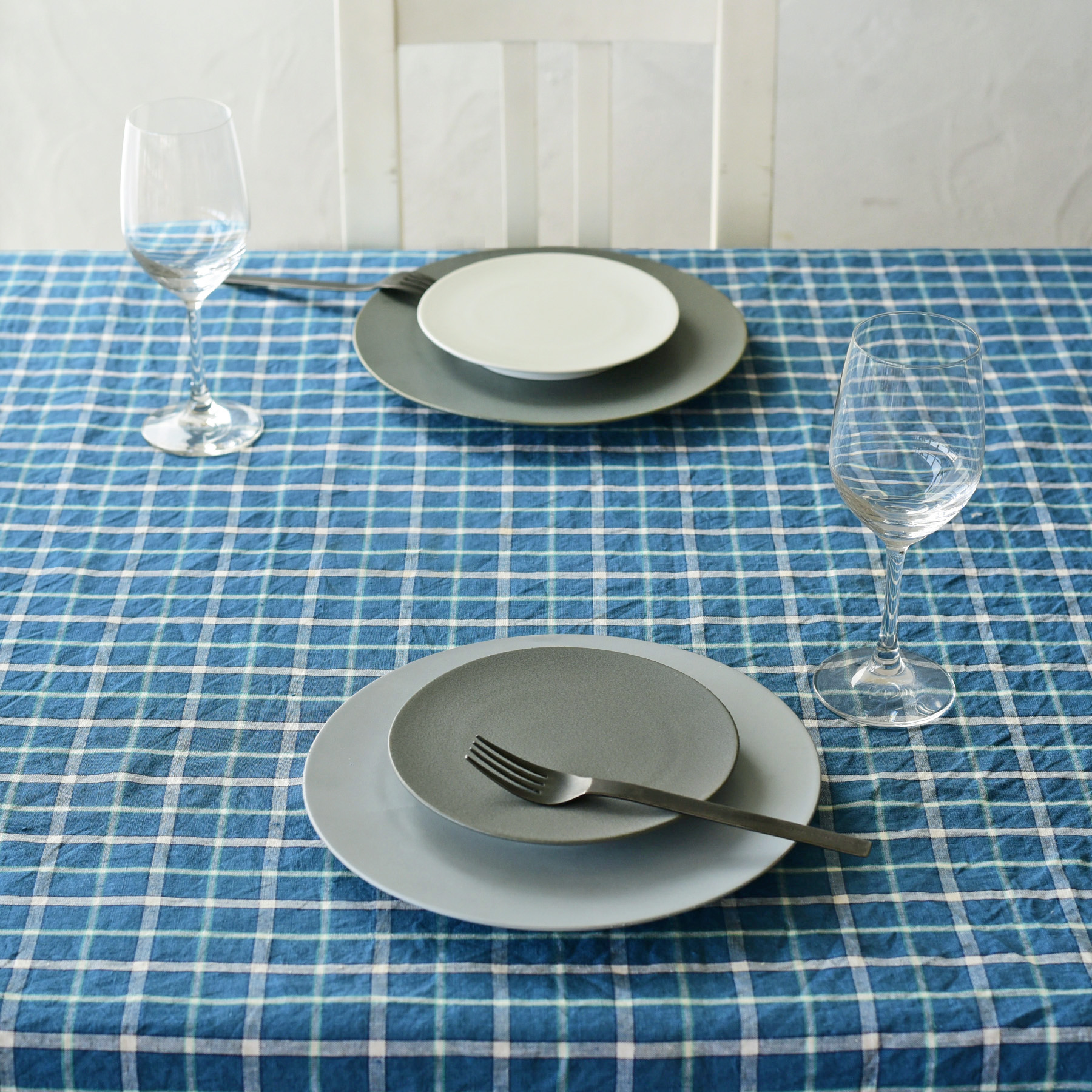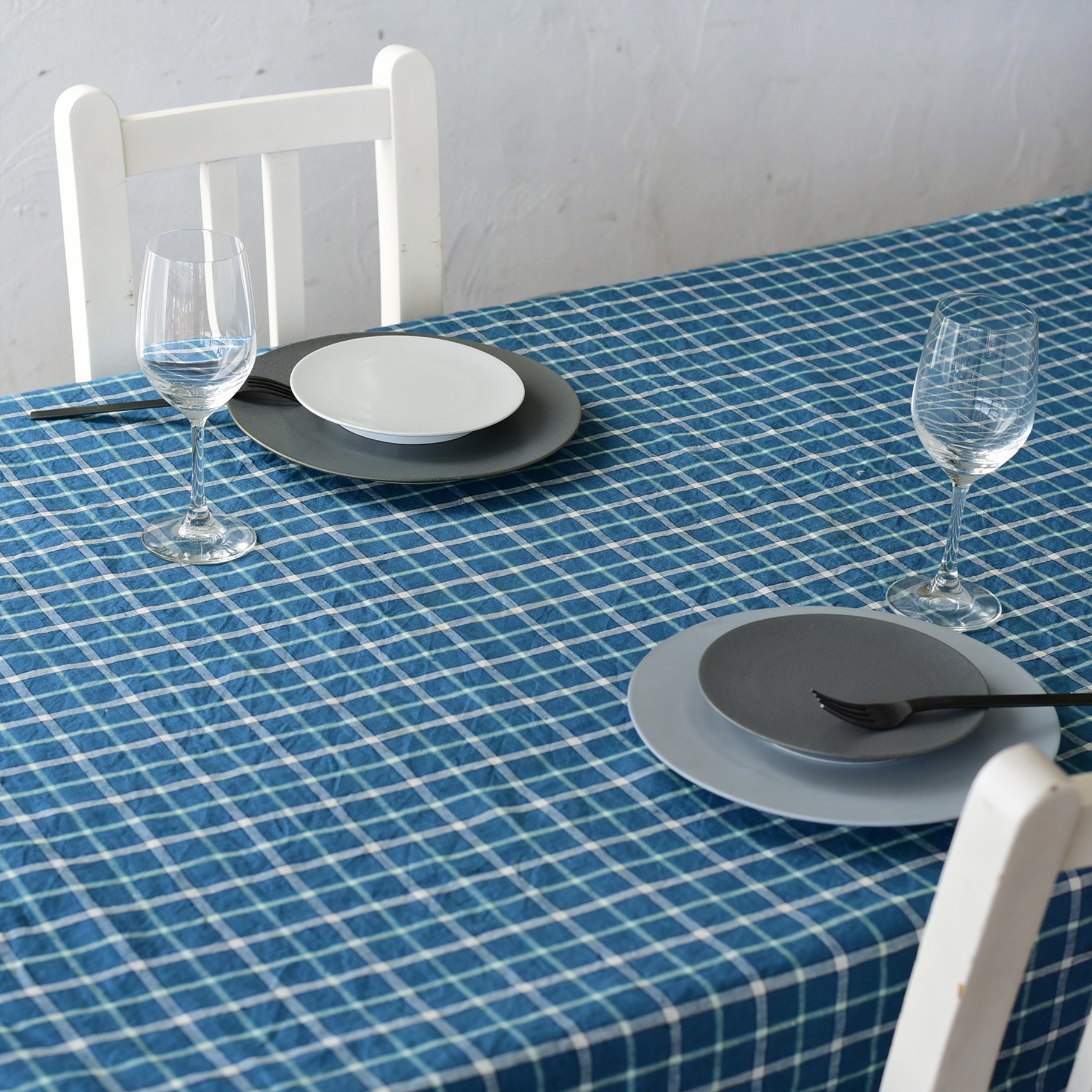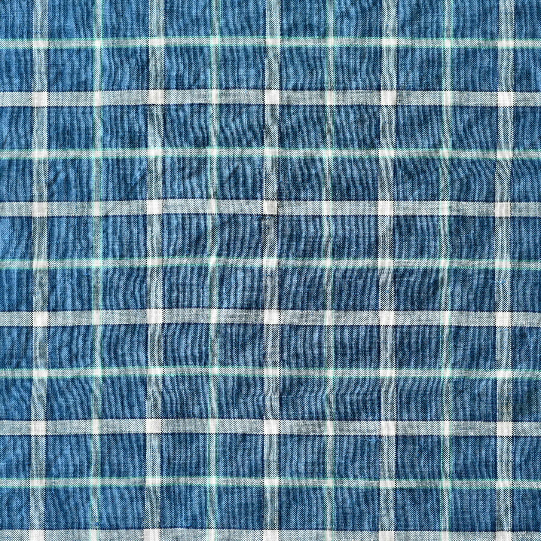少しスモーキーなブルーベースで可愛らしくなりすぎない、落ち着いた雰囲気のチェック。農家や田舎のキッチンで使い込まれたような、ビンテージ感漂うチェック柄をイメージしました。標準的な生地厚で、キッチンまわりからエプロン、ウエアと汎用性の高い生地です。