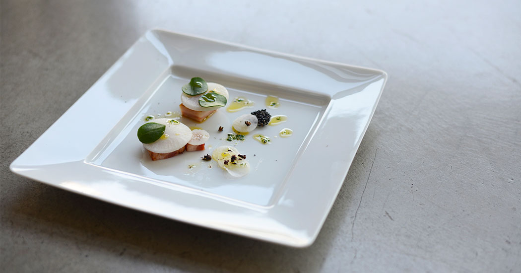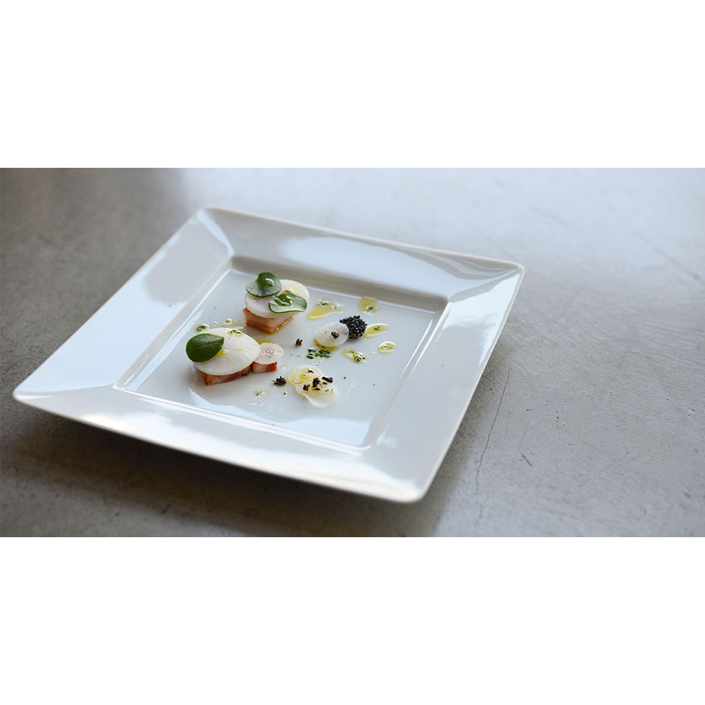 シャープでエッジの効いたデザインと、シンプルで飽きのこない白磁素材のトスはお料理やシーンを選ばず活躍してくれるアイテムです。