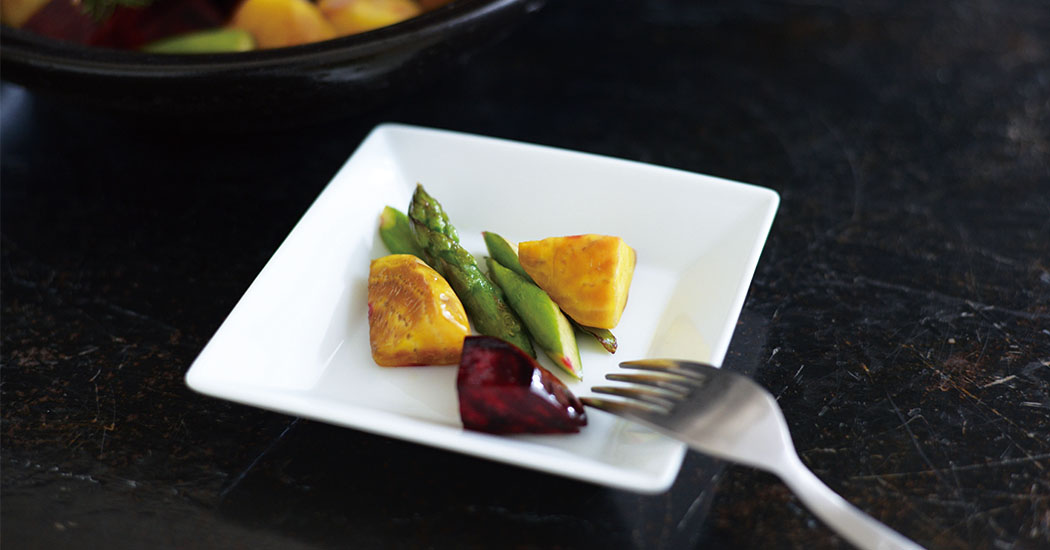 プレートとボウルのアイテム展開で、大きなプレートやボウルで具材とソースを混ぜ合わせて調理し、小さなプレートやボウルに取り分ける、そんな光景がイメージできます。