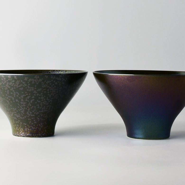 カラーは4色と黒釉の内側に銀の上絵を施した5ラインナップ。