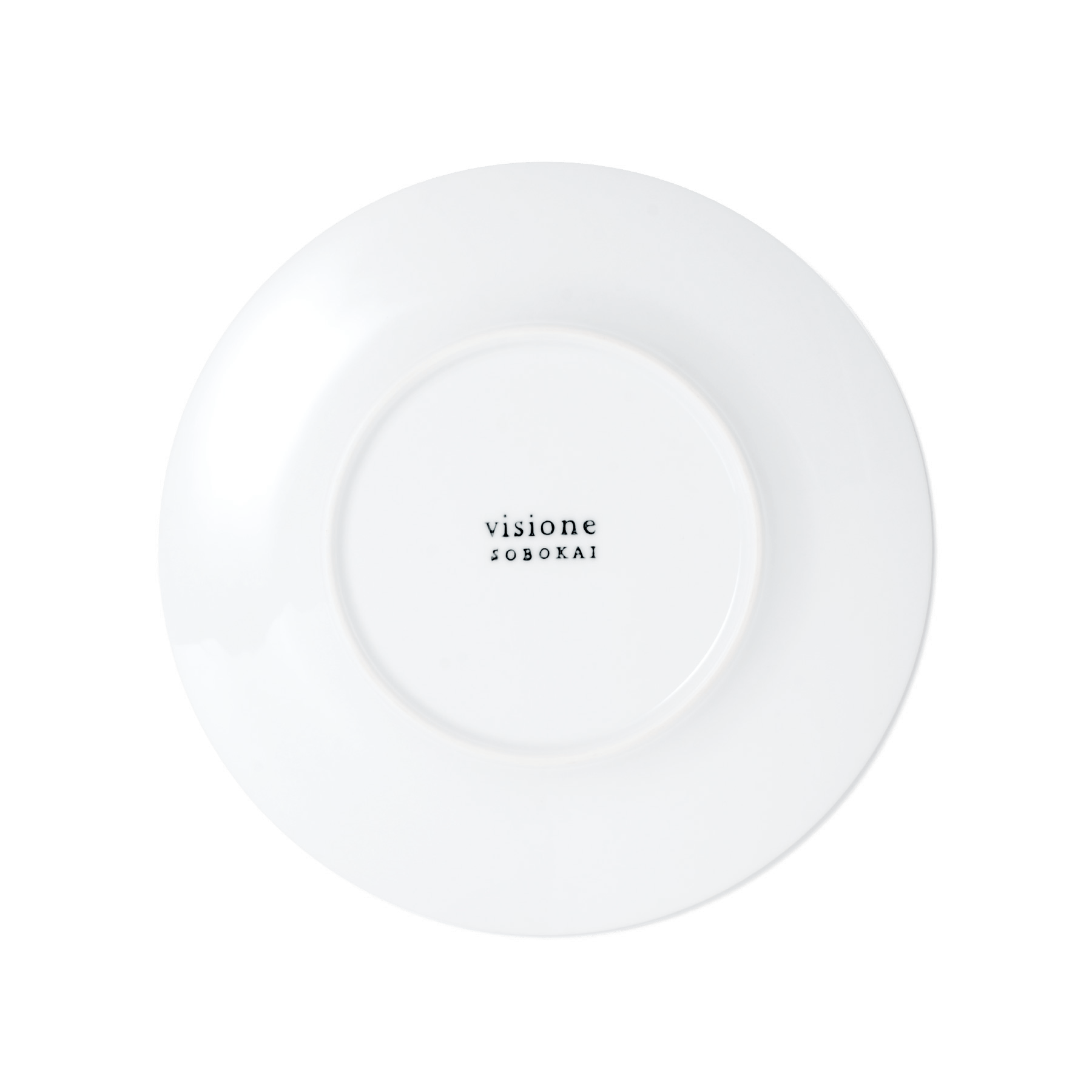 ヴィジョネとはイタリア語で、「幻想」という意味です。うっすらと浮かび上がる、オーセンティックなドット模様のリムのプレートで、模様はへこみに釉薬が溜まることで出来る色合いの変化で薄く上品に浮かび上がります。デザート用の8"プレートとメイン用の10"プレートがあります。