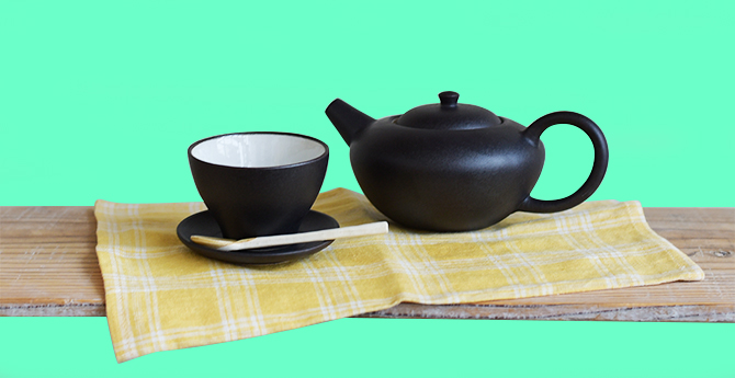 韓国には様々な伝統茶がありますが、「柚子茶」はお土産としても人気。柚子を砂糖と一緒にジャム状に煮詰めたものをお湯に溶かせば完成です。最後に残った柚子の皮や実はスプーンですくっていただきます。伝統的なお茶の文化が根付いている韓国をイメージして、上品な揃いのポットとカップを組み合わせました。色合いがシンプルですが、柚子色のクロスを合わせることで、温かな雰囲気も漂います。