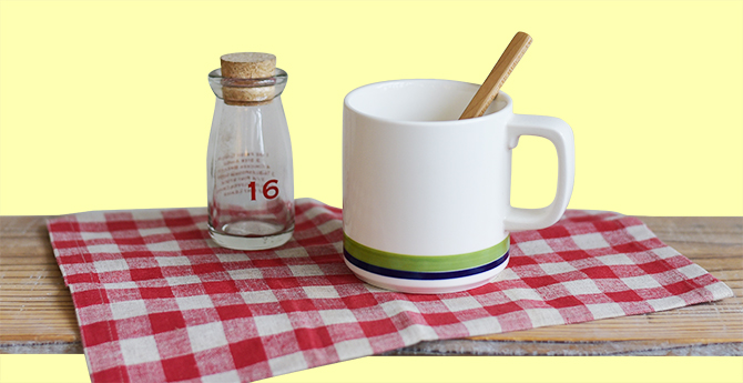 生のミントの葉をどっさり入れ、お湯を注ぐだけの「フレッシュミントティー」。オランダでは必ずと言っていいほどどこのカフェにもあります。そのままでも美味しいのですが、オランダ人はお好みでそこにハチミツを入れて楽しみます。「フレッシュミントティー」によく合う爽やかなラインが特徴の「デイリーウェア マグ」が今回のカップ。口が広いので、生のミントをたっぷり入れるのに重宝します。瓶に入ったハチミツも一緒に用意しました。