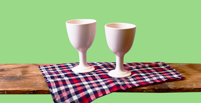 「ボルゴーニャ」とは赤ワインや白ワインにイチゴを加えて作られたカクテルのことで、サングリアとよく似た飲み物。見た目にも可愛らしく、とてもフルーティーなので、お酒が苦手な人にも飲みやすいそうです。淡いピンク色のワインカップと合わせれば、ボルゴーニャの可愛らしさが一層引き立ちます。クロスもトリコロールカラーのものを組み合わせ、華やかなチリのドリンクを楽しみます。