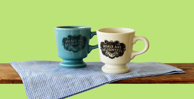 「フルッチ」とはワインのソーダ割りのこと。ハンガリーの夏の定番ドリンクで一般的には辛口の白ワインを使用します。ソーダ水のしゅわしゅわと泡が弾ける様子が名前の由来と言われています。そんなフルッチに合わせて、白とターコイズの爽やかなマグを選びました。クラシカルなロゴも、どこか異国の雰囲気を漂わせて、一段と海外気分を味わわせてくれますよ。