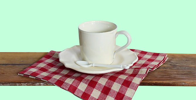 カフェ文化の濃いウィーンの夏の定番の飲み物といえば「アイスカフェー」です。日本のアイスコーヒーのように冷たいコーヒーのことを指すのではなく、水で薄めたエスプレッソにシロップを入れ、ホイップクリームとアイスクリームをトッピングしたもの。今回はトッピングしたホイップクリームのようにふんわりとしたシルエットと色合いの「フェルメ」を選びました。アクセントにオーストリアの国旗と同じ赤をクロスで取り入れます。柔らかな雰囲気でホッとする夏の午後のひとときの完成です。