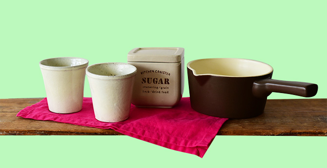 「ゾボ(zobo)」とは、ローゼルというハイビスカスの1種のがくを砂糖と煮出したお茶のことで、真っ赤な見た目が特徴です。ビタミンCがたっぷりで甘酸っぱい味わいです。透き通る赤い色合いが映えるように、白いカップに注ぎます。素朴な土の表情が、自然な味わいを楽しませてくれます。ミルクパンで煮出して、キャニスターからお砂糖をたっぷり入れて、手作りのゾボを楽しみます。