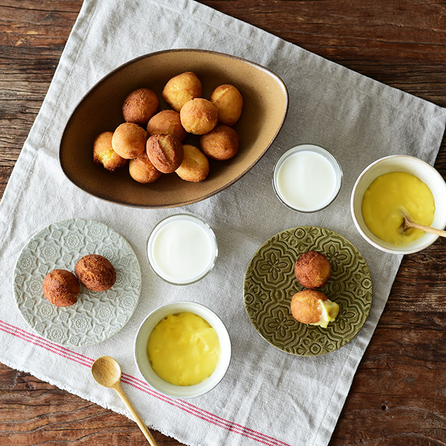 多くの自然が残るナイジェリアをイメージして、土の素材感や自然な色合いを基調としたコーディネート。幾何学模様が可愛らしい「ラウカウ」のプレートは、個性的な模様の藍染めや織物などの工芸品をイメージして選びました。クロスやスプーン、グラスなど、デザインはシンプルだけどいろんな素材を組み合わせることで、素材の良さを感じさせてくれます。