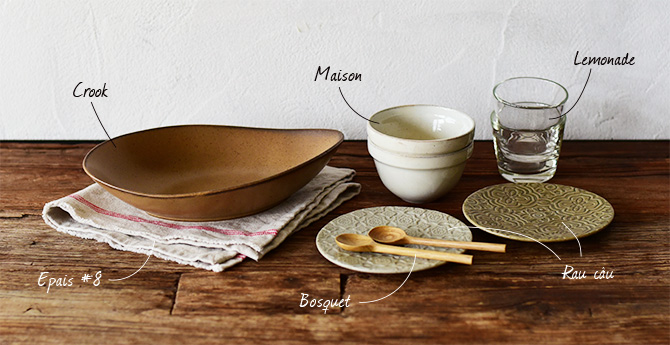 CAST:エペ #8/クルック 10"ベーカー/メゾン ボールS/ボスケ スプーンS/ラウカウ 銘々皿/レモネード フラットタンブラー