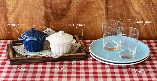 CAST:ファーマーズ 蓋付きココット/ワックスペーパー/カフェトレーS/サテングラス/フランシスコ 240プレート/クルート(赤)