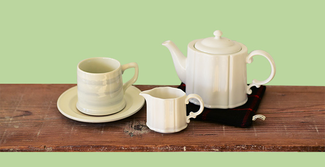 アイルランドでの生活に欠かせない「ミルクティー」。朝食のお供として、帰宅後の一杯や、家族団欒の時間にも必ず紅茶を飲みます。紅茶を飲む際には、たっぷりのミルクも欠かせません。アイルランドでは茶葉ではなくティーバッグで楽しむのが主流。スーパーの壁一面には紅茶売り場が設置されていることも。今回は上品な「ポフィネ」のマグを準備して、ゆったりと過ごすお茶の時間をイメージしました。もちろん、ミルクをたっぷり入れて「ミルクティー」として楽しみます。