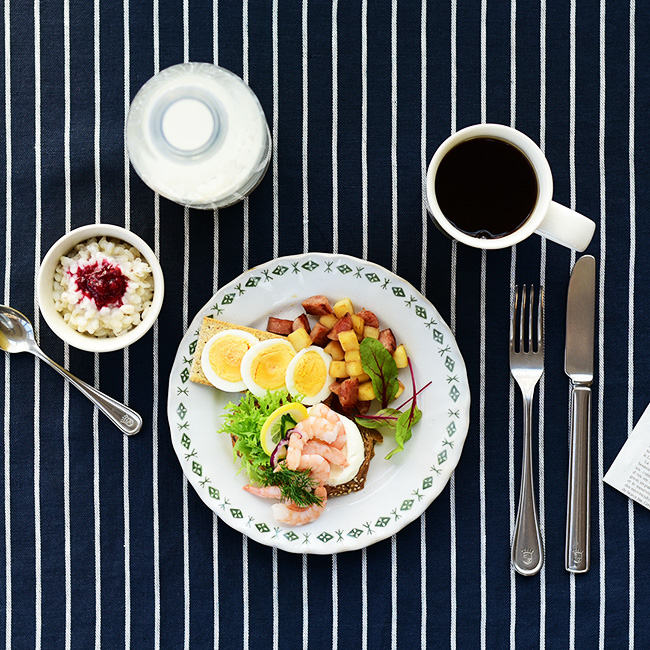 国の半分が森林であるスウェーデンでは豊かな緑だけではなく、満点の星空やオーロラ、壮大な雪景色が楽しめます。そんなスウェーデンをイメージしてナチュラルな色合いの器をコーディネートしました。スプラのパンプレートの模様は葉や木の実をイメージしたもので、自然たっぷりのスウェーデンで楽しむ食事にぴったりです。ジャガイモやレモンなど、食材にも使われている黄色をアクセントカラーとして使えば、食材と食器のコーディネートもきれいにまとまります。